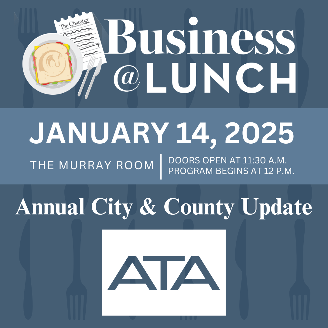 Join us for Business at Lunch presented by ATA CPA's on Tuesday, January 14th in the Murray Room of the CFSB Center. Doors open at 11:30am; Program runs Noon - 1:00pm
