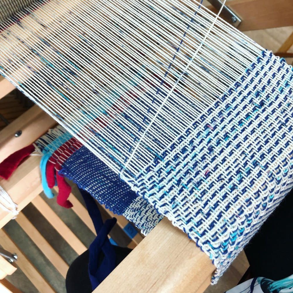 Learn the whole process of weaving on a 4 harness floor loom --from winding warp and dressing the loom to weaving and finishing your project! We will be using a variety of colors and materials. Participants will will leave with a finished project of their choice—scarf, table runner, sampler, or saori project. This class is limited to 5 people so we can help participants plan & design their individual projects.