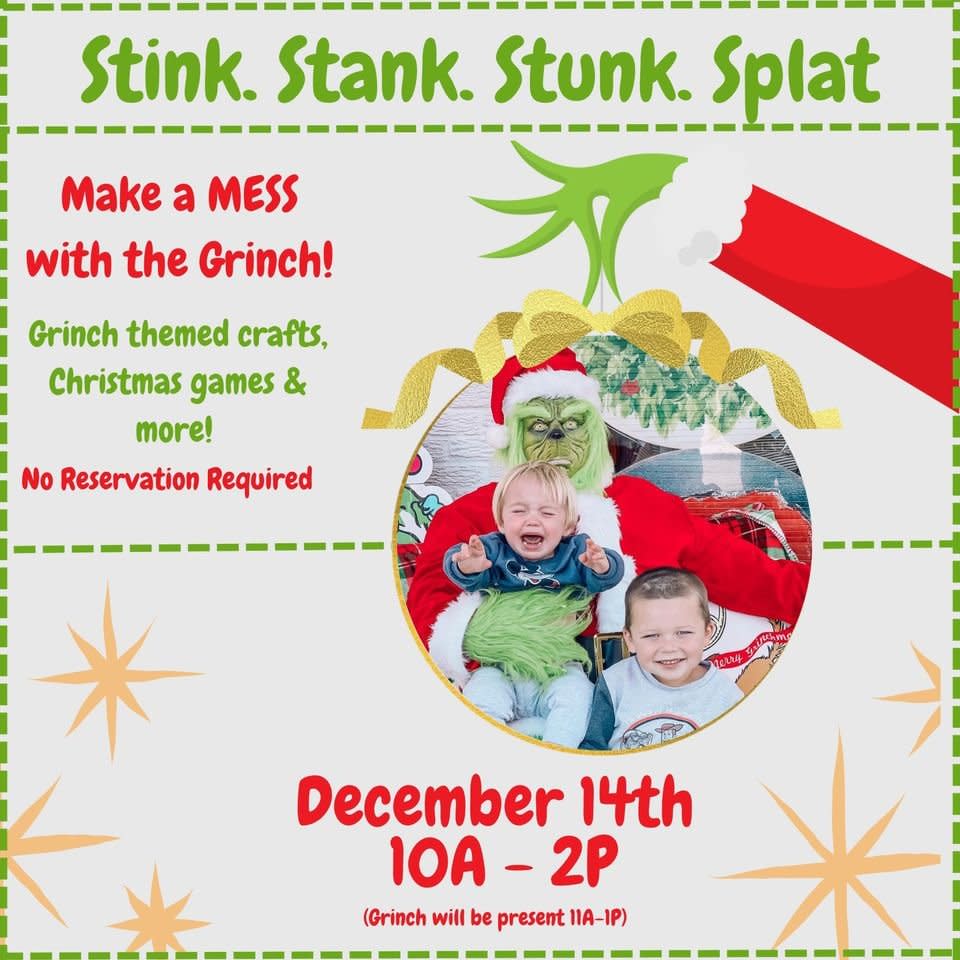 Make a mess with the Grinch! Grinch themed crafts, Christmas games & more! No reservation required!! Grinch will be present 11A - 1P!