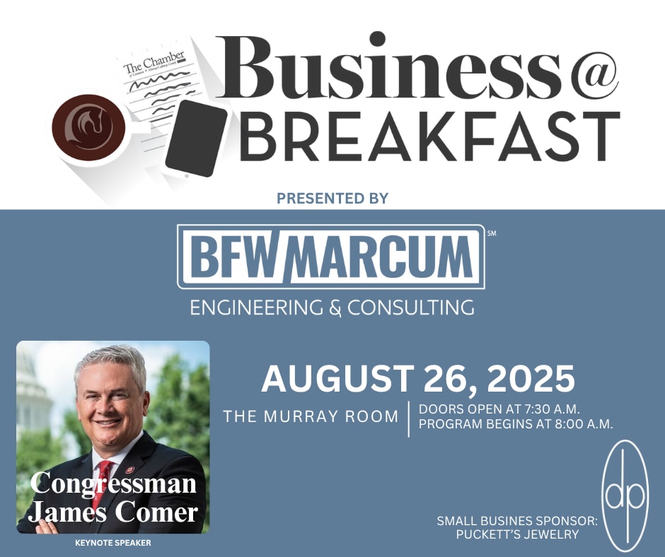 Join us for Business at Breakfast presented by Bacon Farmer Workman/Marcum Engineering on Tuesday, August 26th @ The Murray Room of the CFSB Center. Doors open at 7:30am; Program runs 8:00am - 9:00am.
