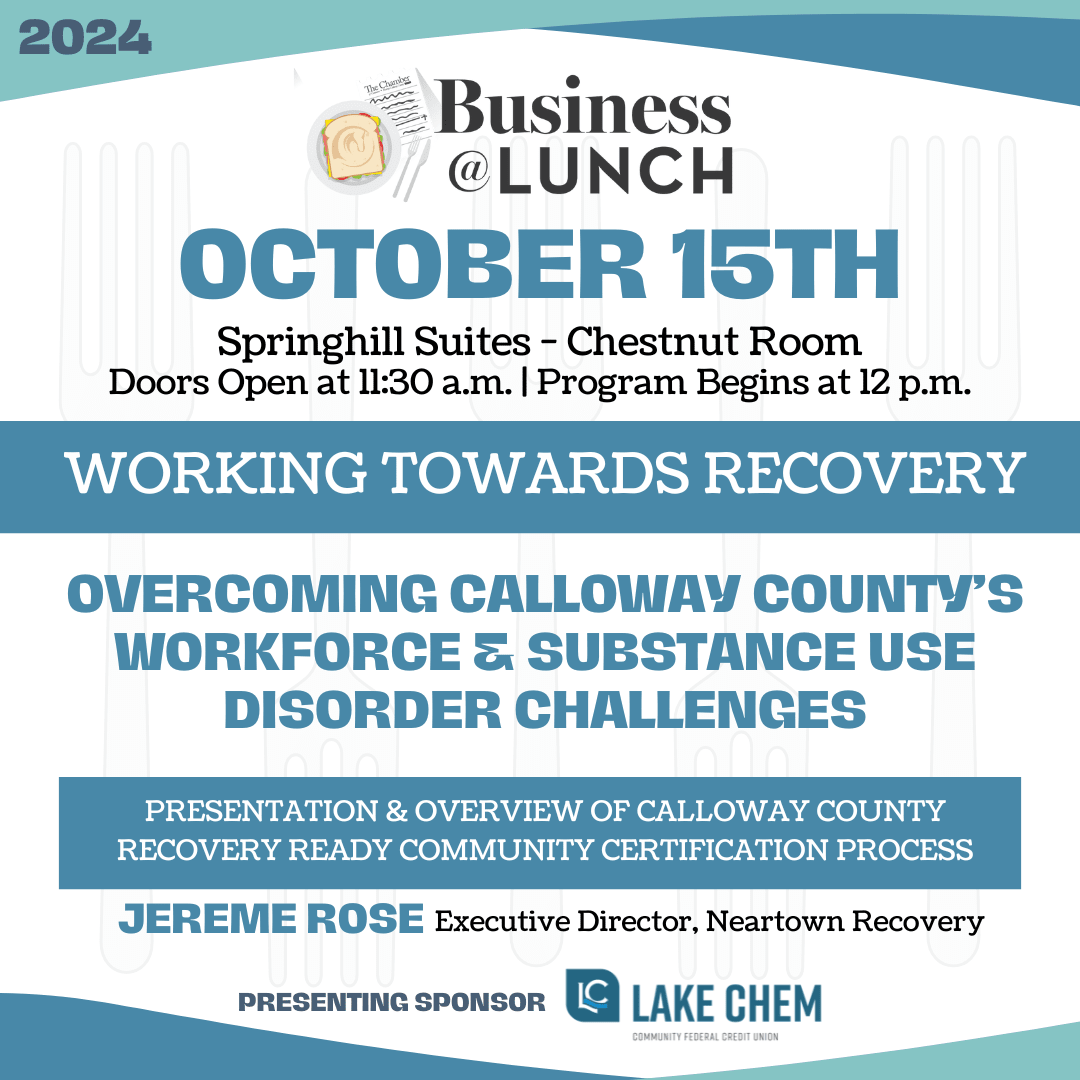 We are honored to welcome Jereme Rose, Executive Director of Neartown Recovery, as our keynote speaker. Jereme will lead a vital discussion on the steps Calloway County is taking to address these challenges head-on, offering an overview of the Calloway County recovery ready community certification process. This presentation is essential for business leaders, community stakeholders, and anyone committed to fostering a healthier, more resilient workforce.