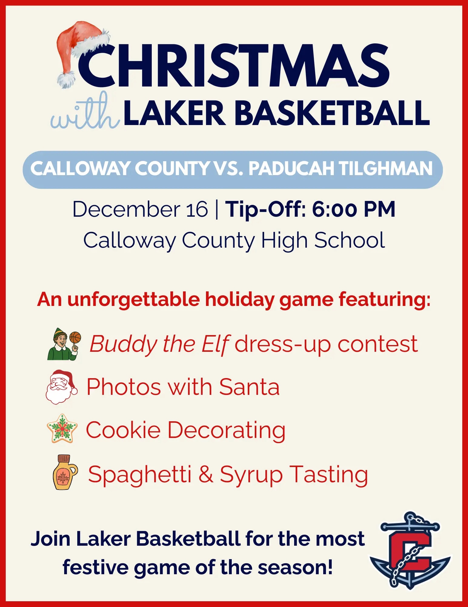 Join Laker Basketball for an unforgettable holiday game featuring a Buddy the Elf dress-up contest, an ugly Christmas long-sleeve giveaway, photos with Santa, cookie decorating, a spaghetti & syrup tasting bar, and more!