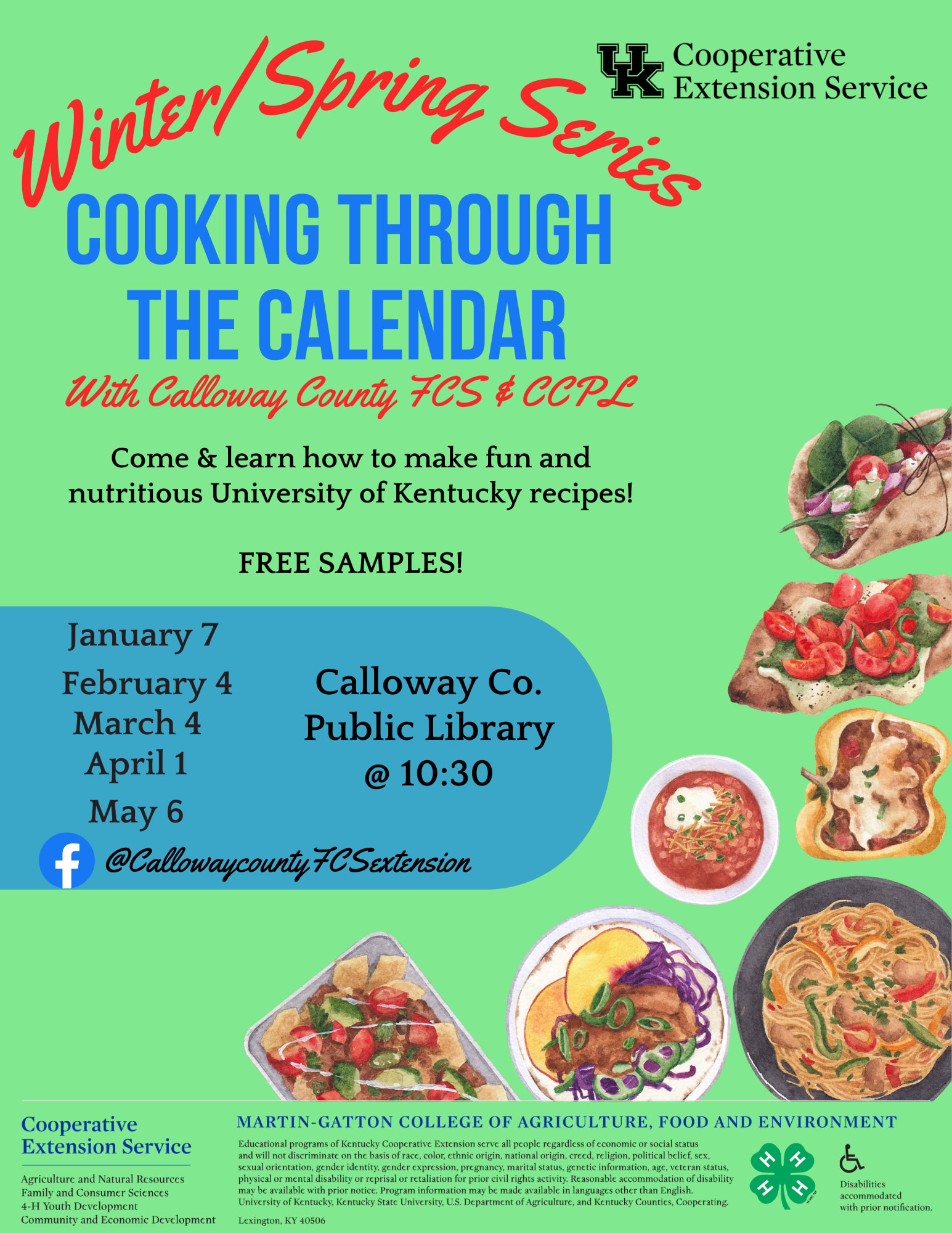 Join us for our Winter/Spring series of Cooking Through the Calendar! Learn how to make fun and nutritious University of Kentucky recipes along with free samples!