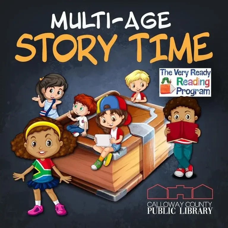 Calloway County Public Library’s Multi-Age Story Time Program is a fun, half-hour program designed for children 3, 4, 5, or 6 years of age accompanied by an adult. It features stories, songs, and activities based on the foundation of the research-based Very Ready Reading Program, which offers seven ways to immerse kids in early literacy and reading readiness. No Registration is Required. - Siblings welcome.