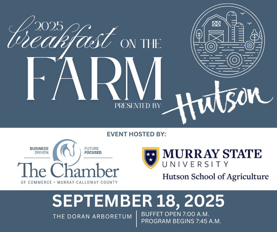 Our September "Breakfast on the Farm" will be in partnership will Murray State University Hutson School of Agriculture. Breakfast will be served beginning at 7:15 a.m.