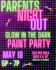 PARENTS NIGHT OUT GLOW IN THE DARK PAINT PARTY!! Open now!! Comment on their Facebook page to reserve your spot! Ages 6&Up
