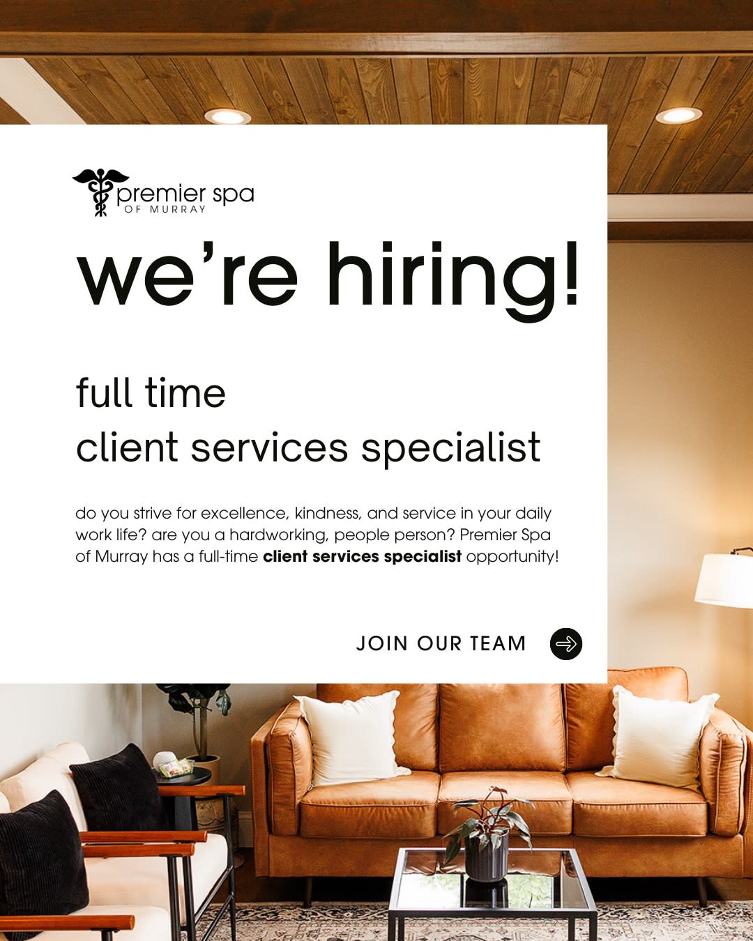 Premier Spa of Murray is looking for a full-time Client Services Specialist to be the welcoming face and voice of our spa.